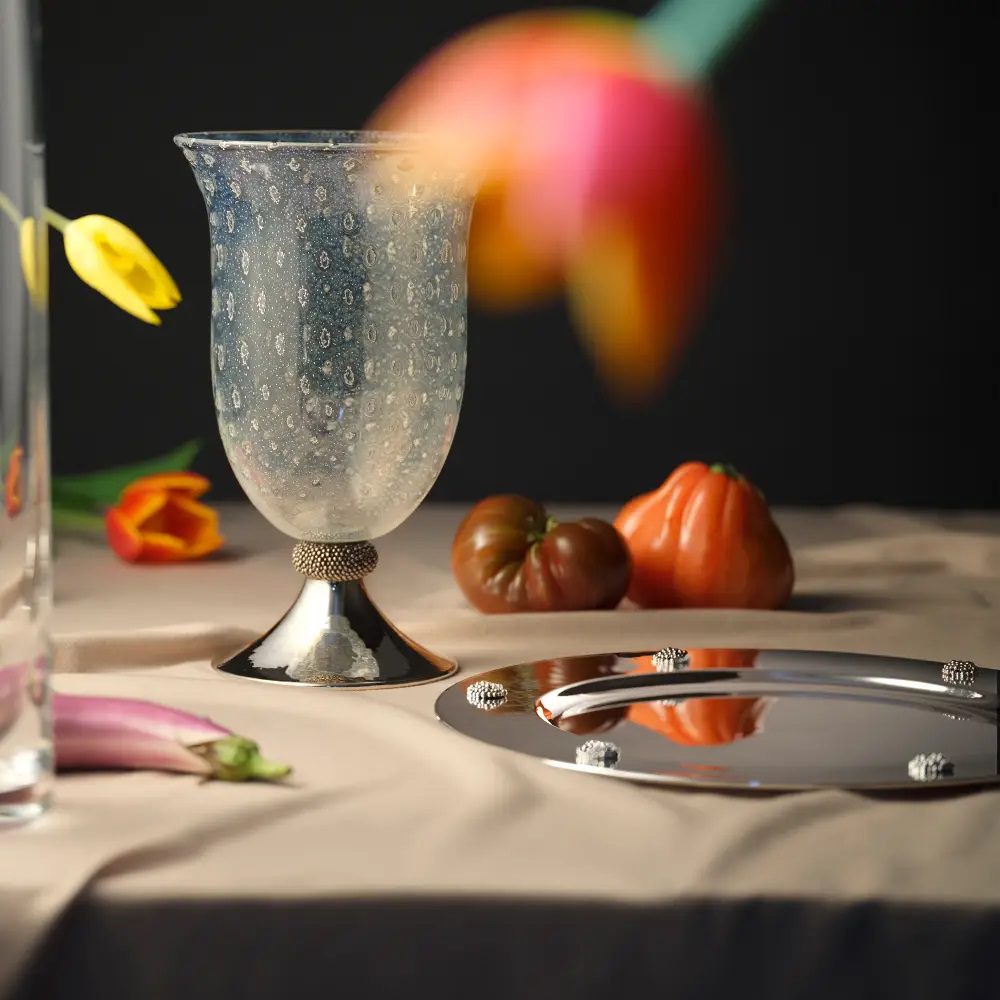 La Collezione Caviar reinterpreta un famoso design Buccellati che risale agli anni ’30. Da allora, il motivo composto da piccole sfere di caviale è stato utilizzato da Buccellati per molti gioielli e oggetti in argento, e viene ora riproposto in una collezione che raccoglie pezzi per la decorazione della tavola e della casa. La bellezza del design, la straordinaria artigianalità e il carattere intrinseco di ogni oggetto sono caratteristiche tipiche dell’argenteria Buccellati. Non importa se l’oggetto è di grandi o piccole dimensioni, l’argento fatto a mano da Buccellati è una forma d’arte che bisogna usare, godere e custodire gelosamente per tutta una vita.