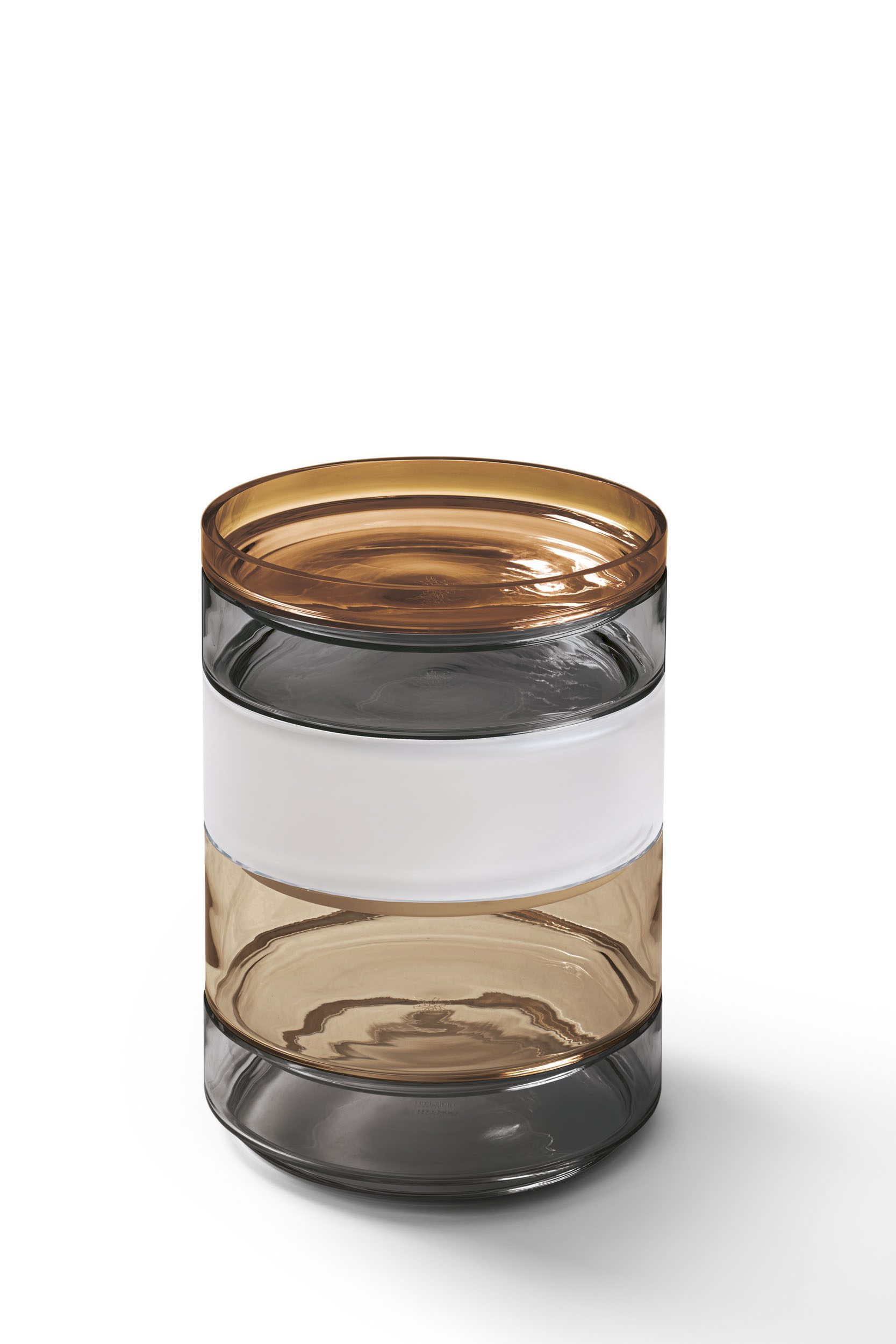 Un gesto semplice basta a cambiarne la funzione e l’atmosfera. Ogni elemento può così vivere da solo, come raffinato centrotavola o piccolo contenitore, oppure unirsi agli altri in una scultura di luce e colore che si fa tavolino o installazione decorativa.