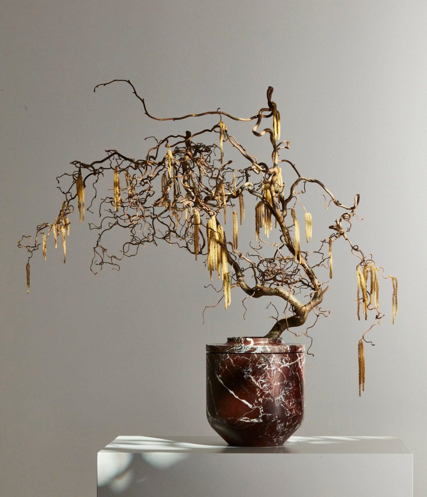 Al centro, il disco superiore è caratterizzato da un foro circolare, lungo il cui perimetro si sollevano leggermente i lembi con un elegante tema decorativo: l’apertura permette di inserire fiori recisi e di utilizzare il vaso come oggetto prezioso per valorizzare un ambiente o un arredo in spazi residenziali, hospitality o di retail. Ottenuta da un blocco massello di marmo – selezionabile tra le diverse proposte a catalogo e scavato per rendere leggero il prodotto -, la collezione Royal esalta le venature e le proprietà estetiche della pietra naturale, grazie alla stondatura del volume.