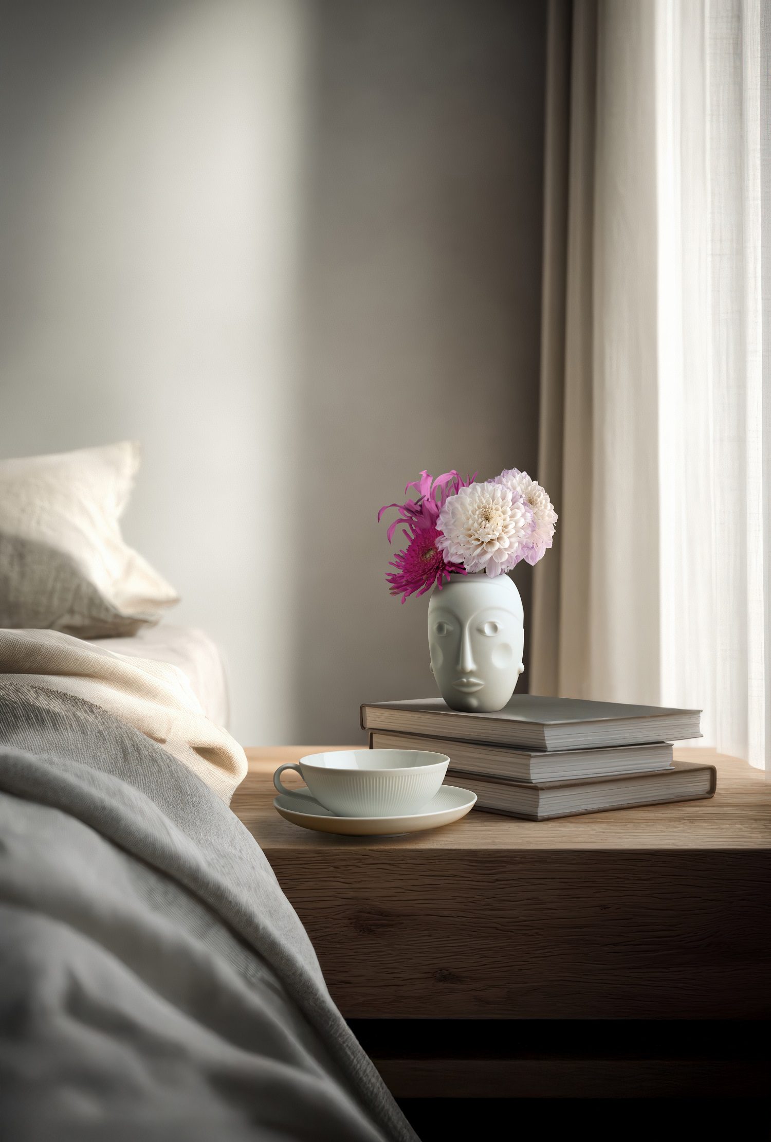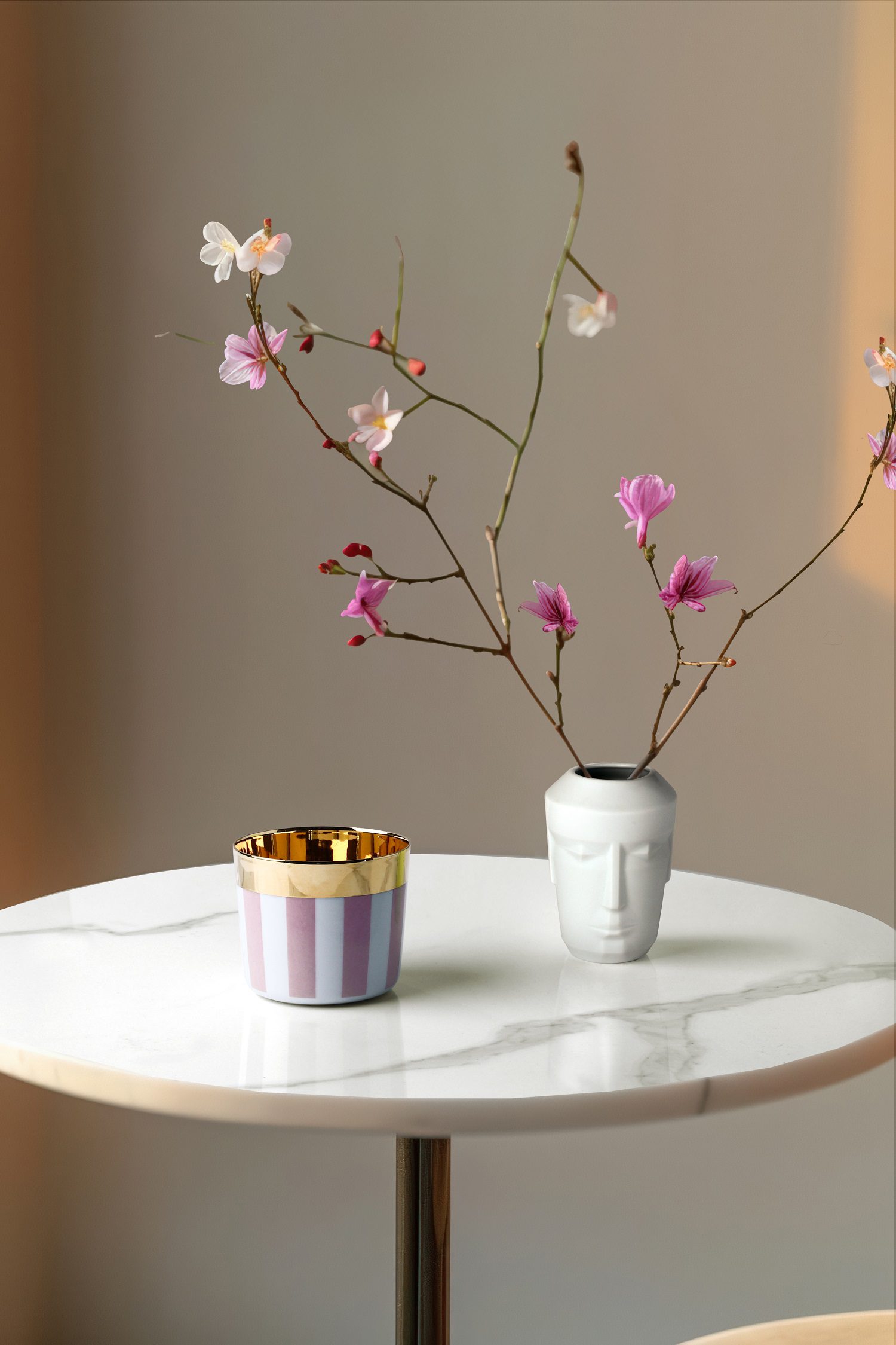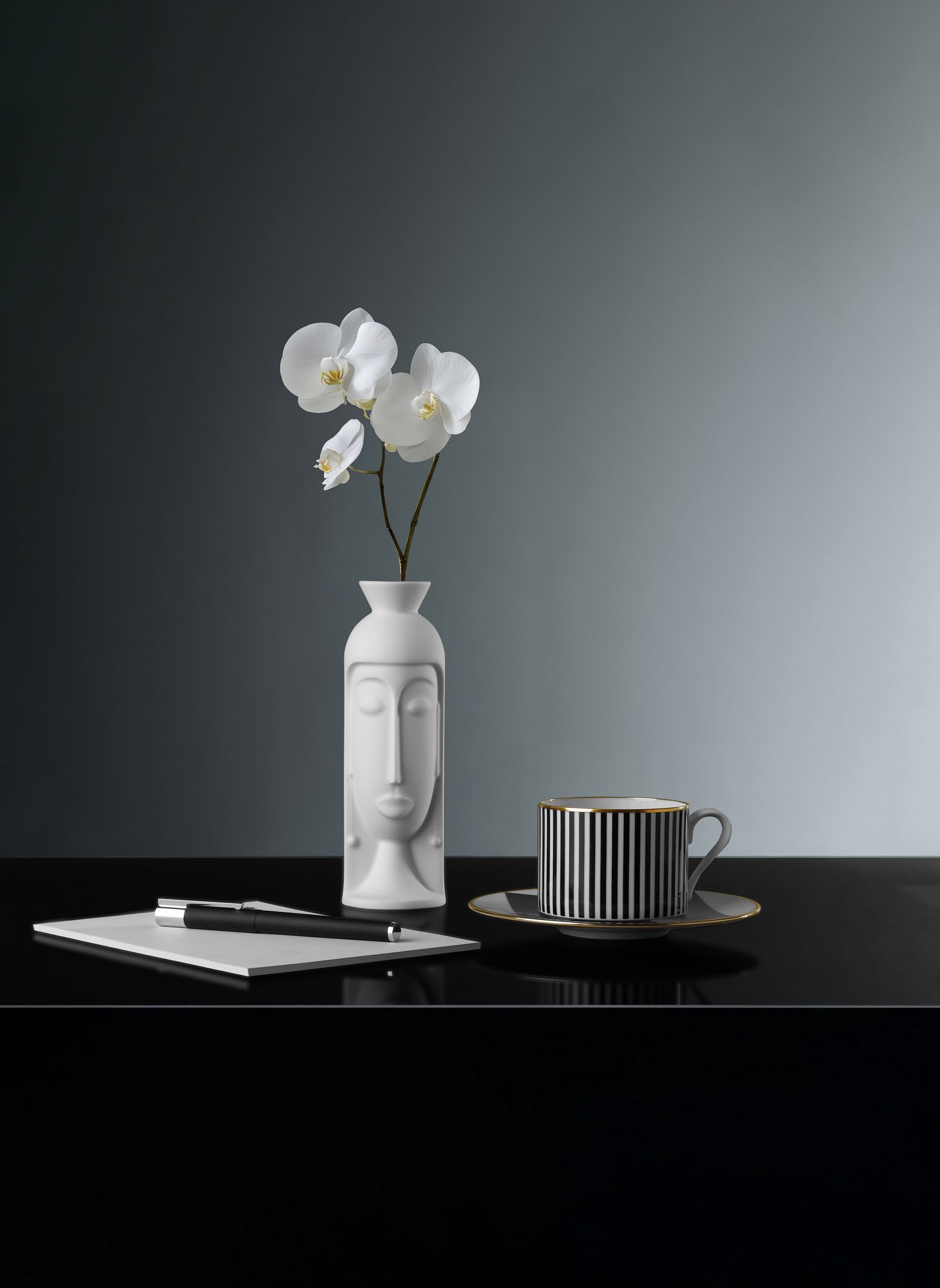SIEGER di FÜRSTENBERG presenta Les Trois Amis, un trio di nuovi e raffinati vasi dalla presenza scultorea. Ciascun vaso è decorato con un volto stilizzato in rilievo, elaborato a mano con grande cura. La finitura satinata della porcellana bianca fornisce un aspetto opaco che esalta i contorni raffinati e le caratteristiche del viso dei piccoli vasi.