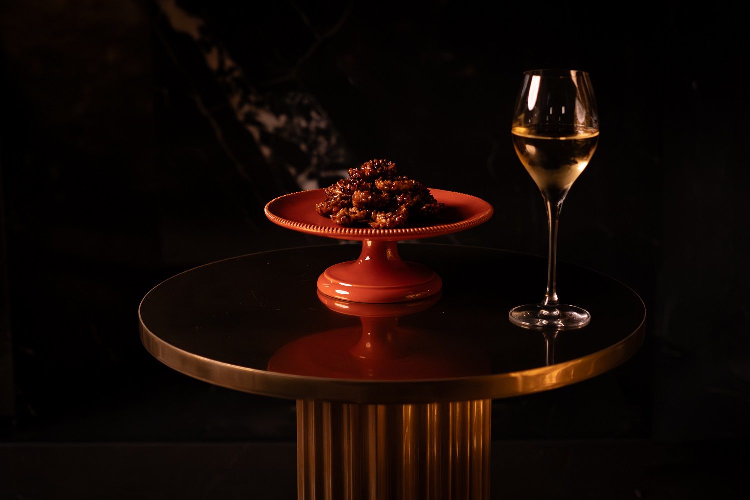 In abbinamento il La Fralluca Filemone Vermentino 2024, Tangerine Dream, ovvero Gin Winestillery, clementina preservata, tè Oolong, o ancora l’N.V. Chioccioli Altadonna Cuvée della Terra Metodo Classico.