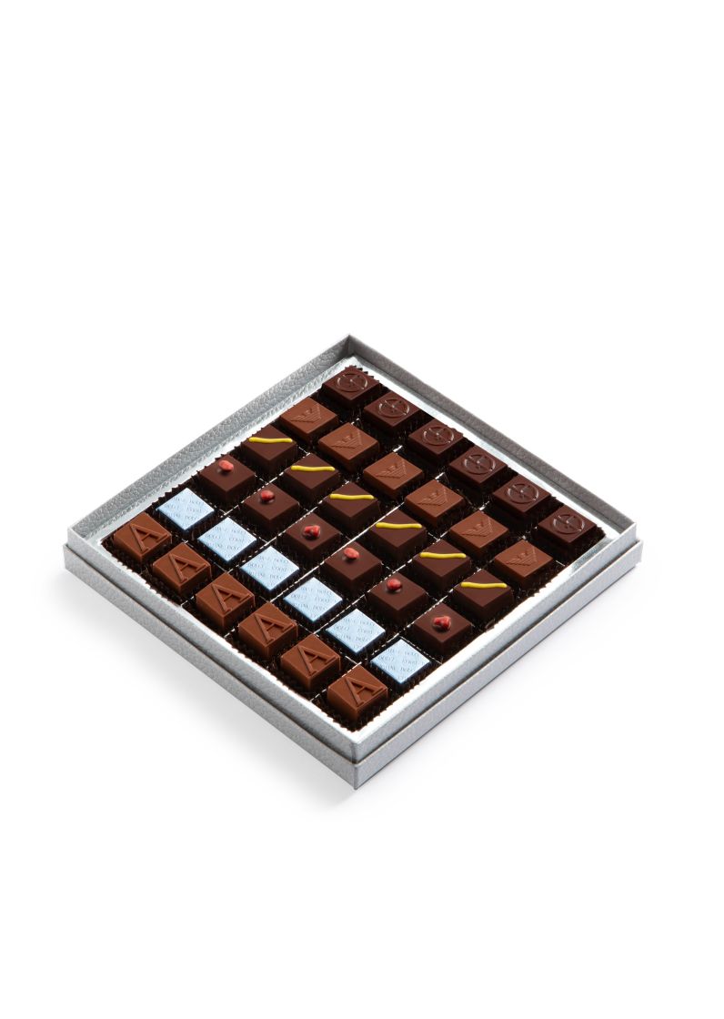 Si veste d’argento anche il Calendario dell’Avvento che regala all’attesa del Natale, ogni giorno, una piccola diversa sorpresa. La selezione di cioccolatini si arricchisce inoltre di una pralina in edizione limitata di cioccolato bianco al lampone con cuore di pistacchio: un equilibrio raffinato tra dolcezza e sapore intenso. Tra le novità, le classiche praline quadrate con due nuovi loghi a rilievo: tondo monogram GA e aquila.