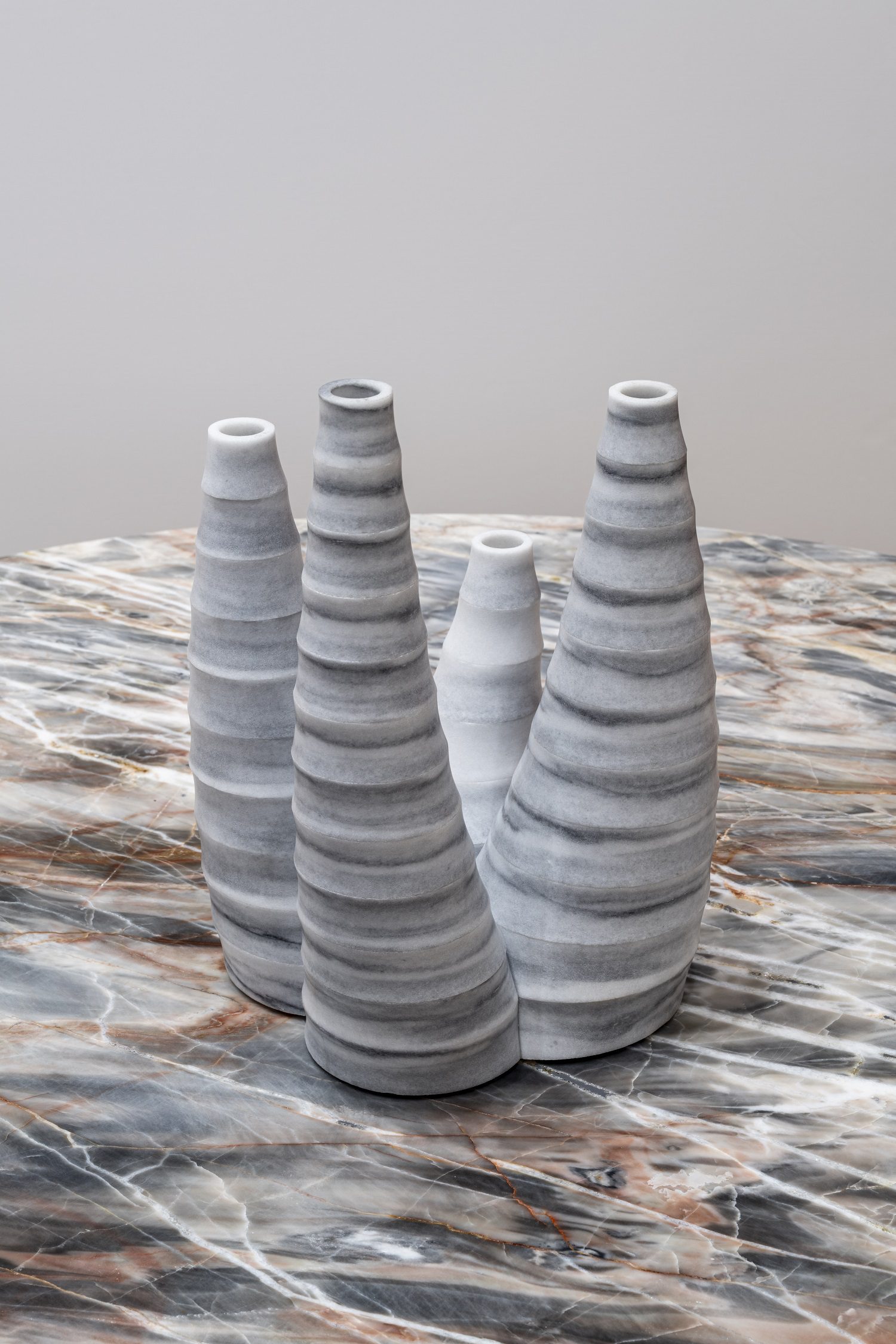 Ogni pezzo è una piccola architettura domestica: un invito alla contemplazione e all’esperienza fisica della materia, in cui tecnologia e arte dialogano armoniosamente.