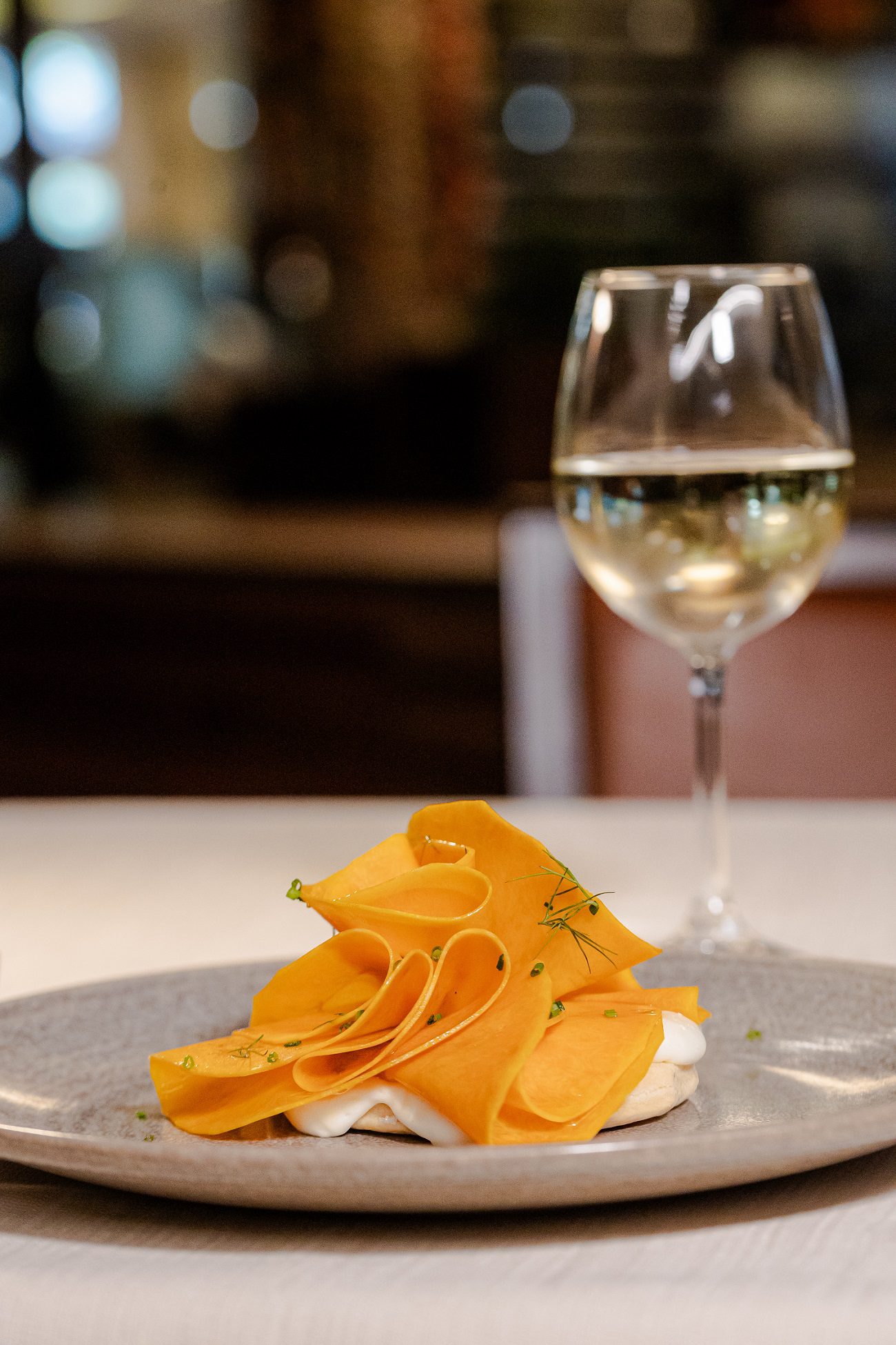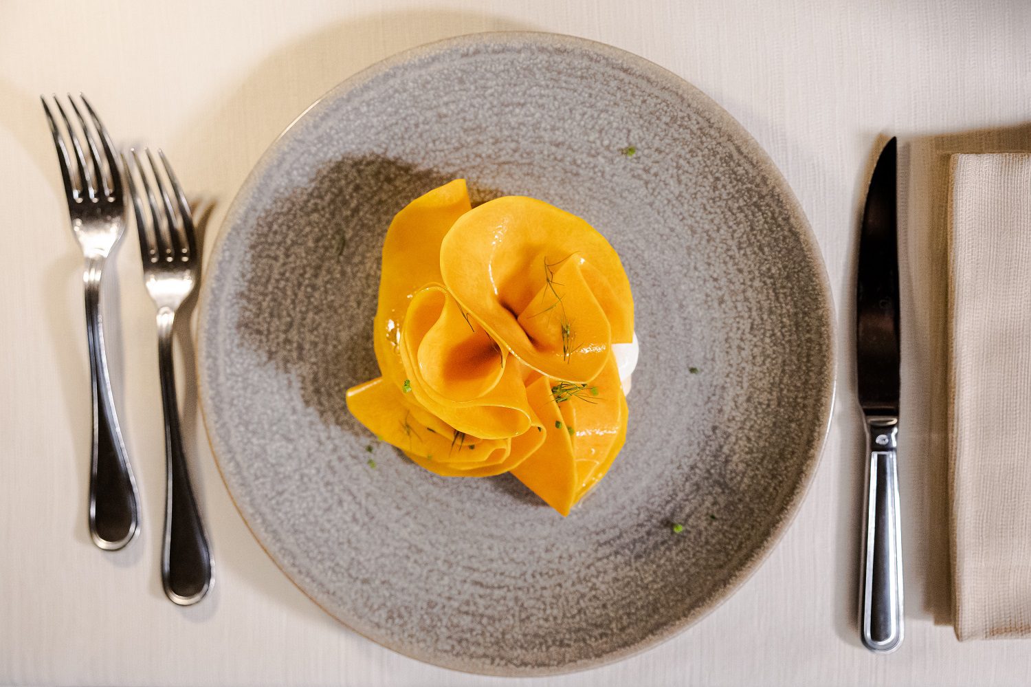 Il risultato è un’armonia di consistenze e profumi che cattura i sensi e racconta, in ogni boccone, la raffinata semplicità dell’autunno toscano reinterpretata con eleganza contemporanea. Un piatto che è un vero omaggio ai colori e ai sapori dell’autunno toscano, pensato per stupire ospiti e gourmand con un tocco di leggerezza e creatività.