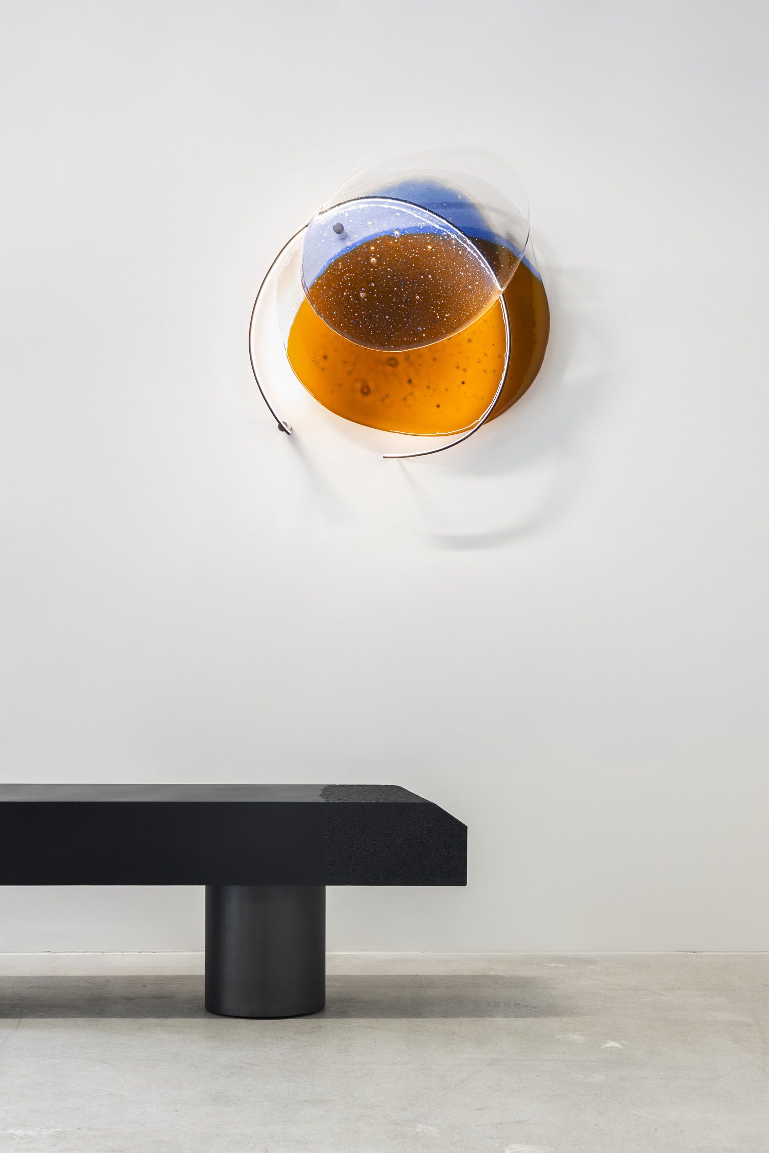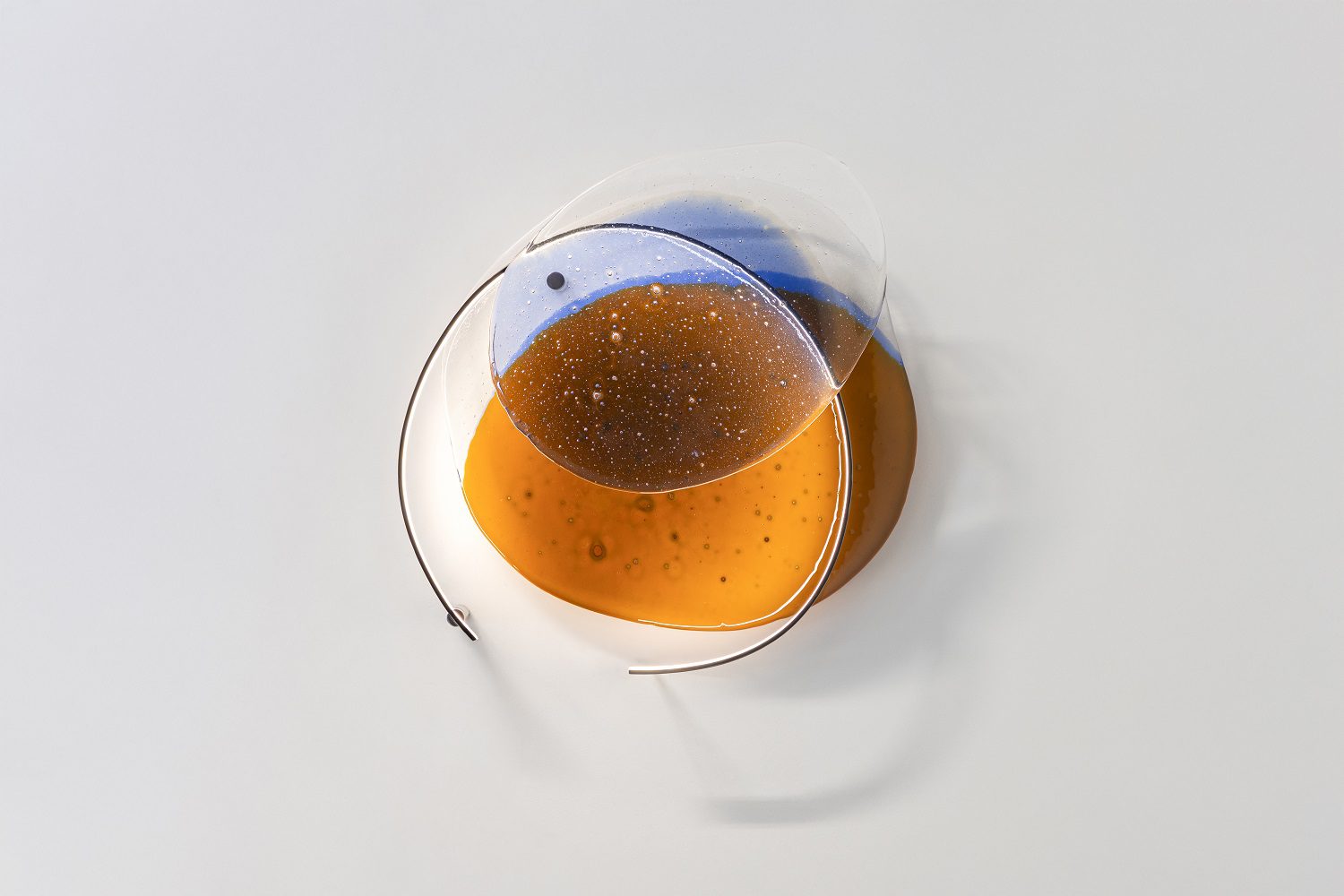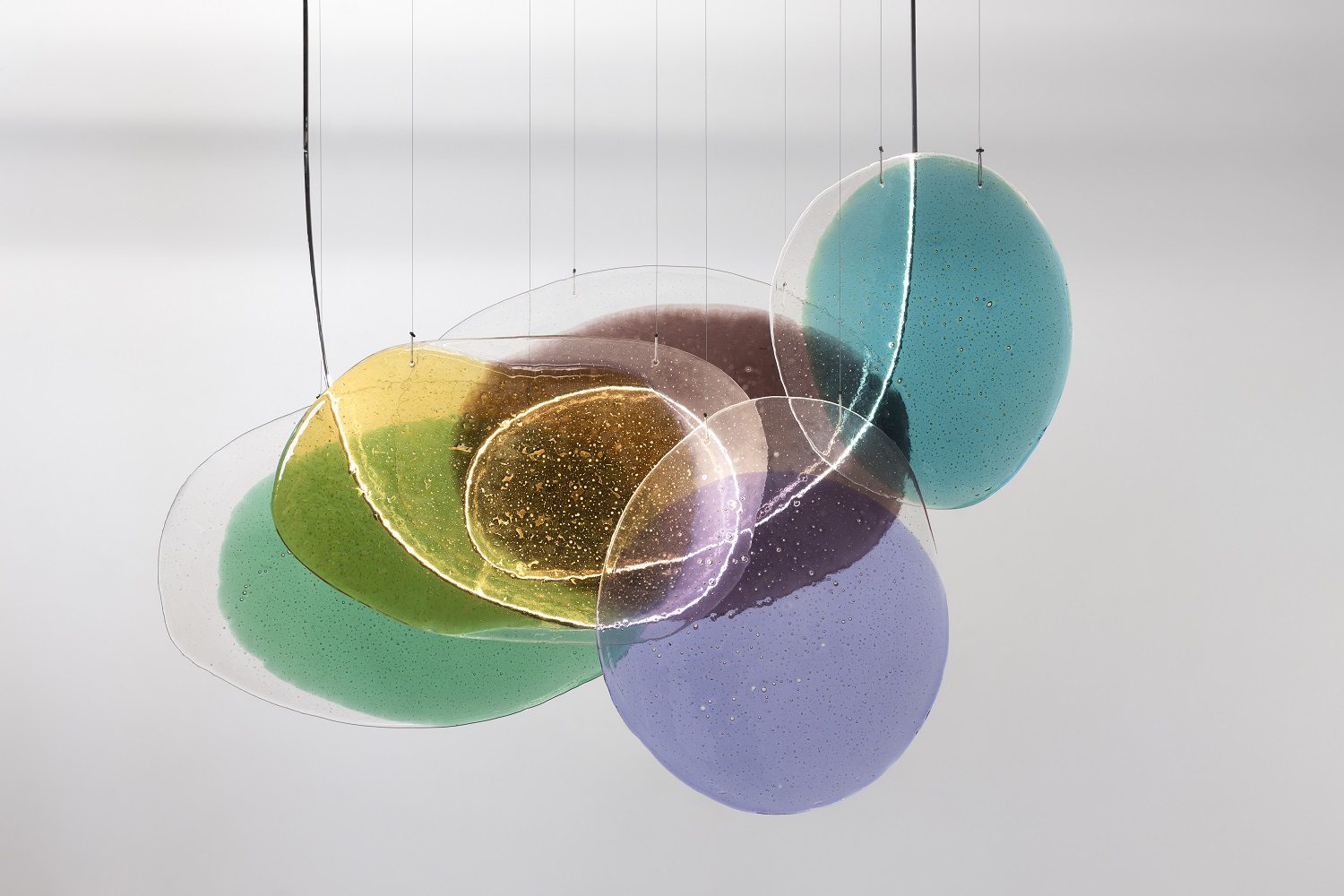 Crisalide di Draga & Aurel segna una nuova evoluzione degli artisti nel loro percorso di sperimentazione sulla materia. Il vetro diventa materia viva e mutevole, capace di accogliere e trasformare la luce in colore, trasparenza e movimento. Ogni pezzo nasce da un processo sperimentale di stratificazioni cromatiche che generano nuove palette originali e cangianti. Le forme ovoidali e traslucide che ne derivano evocano un equilibrio sospeso tra densità e leggerezza, tra forma e dissolvenza.