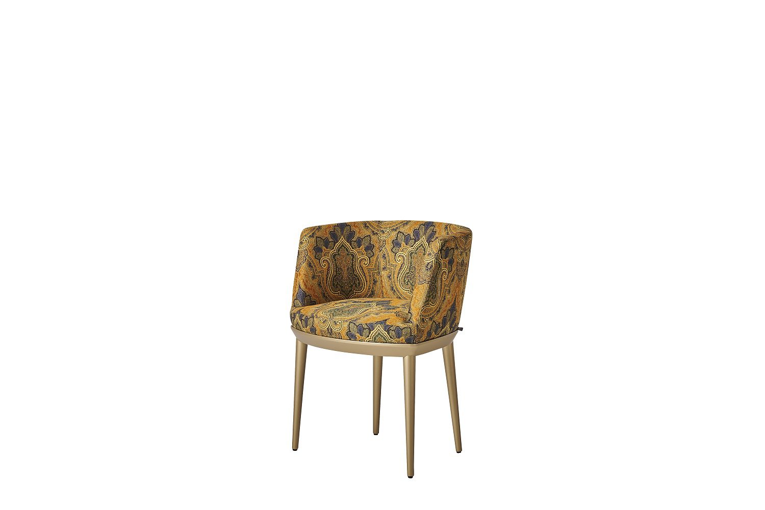 Comoda come una poltrona, la sedia Bare si distingue per le sue linee retrò e per lo schienale avvolgente, rivestito con i tessuti iconici della collezione Etro Home Interiors. Versatile, si inserisce con grazia e carattere in contesti di stili diversi.