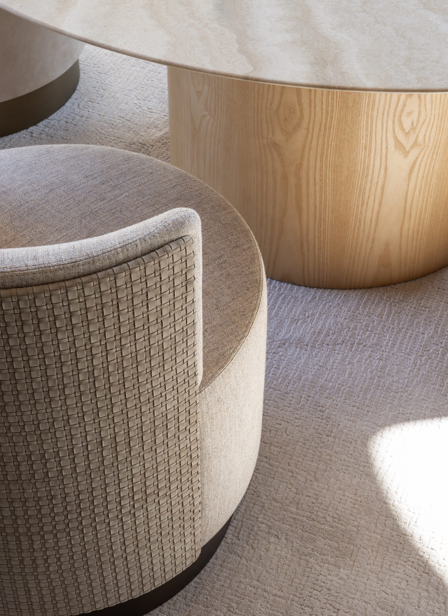 Con la nuova versione “materica”, la collezione Myon si arricchisce di piani in travertino e marmi selezionati, conferendo al progetto un’identità completamente rinnovata. L’introduzione delle basi in legno in tre finiture differenti sottolinea l’essenza naturale del materiale, mentre le peculiari sfumature cromatiche e i dettagli esclusivi del travertino e dei marmi, impreziosiscono ulteriormente i tavoli Myon donando eleganza, raffinatezza e grande versatilità compositiva.
