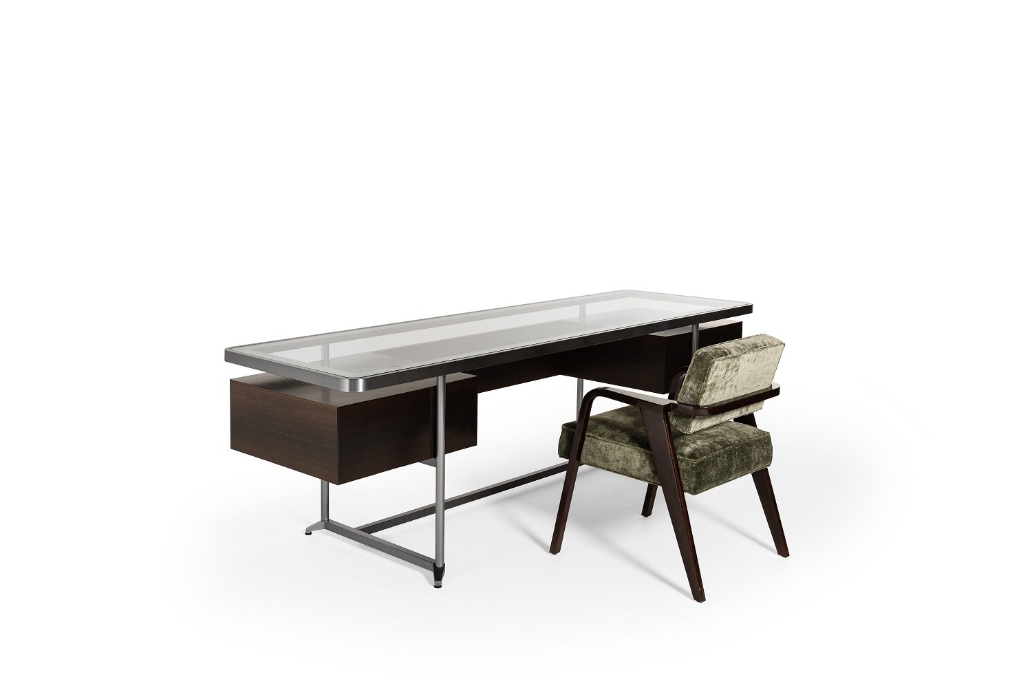 L’imbottitura generosa della seduta, rivestita nei velluti su i toni del verde che caratterizzano l’intera collezione, assicura un comfort superiore, rendendo questa sedia perfetta sia per ambienti domestici eleganti che per contesti contract di alto livello. Un tributo alla grande scuola dell’ebanisteria italiana, reinterpretata con un linguaggio attuale e sofisticato.