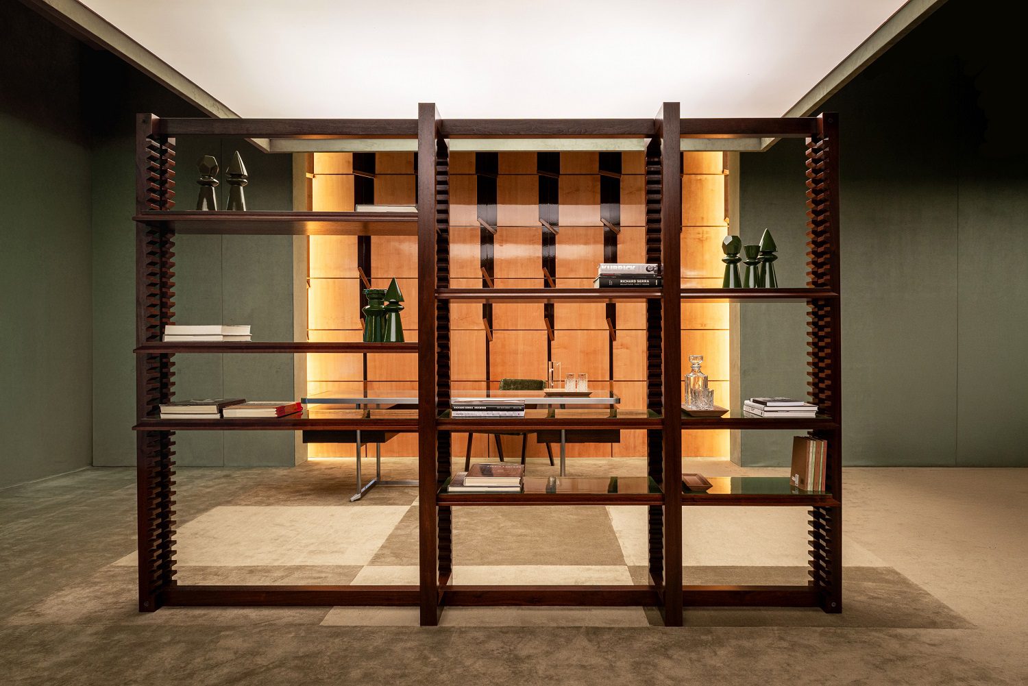 Ritmica di Fratelli Boffi è una libreria bifacciale, portante e modulare, pensata per integrarsi con eleganza e funzionalità in spazi living e ambienti professionali. Il sistema a cremagliera dei montanti è realizzato in massello di noce con un’anima metallica interna che ne aumenta la stabilità strutturale, combinando precisione artigianale e tecnologia costruttiva.