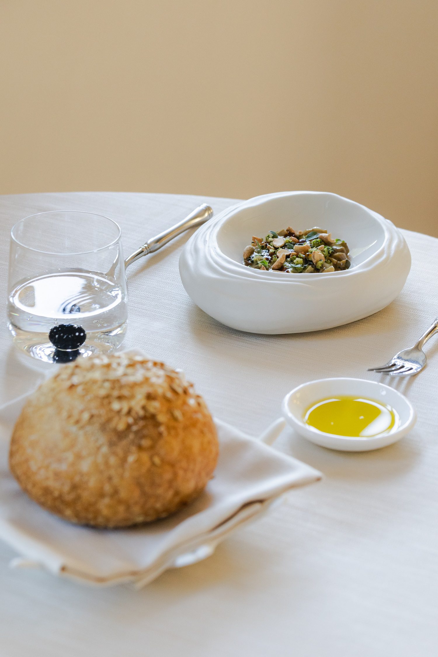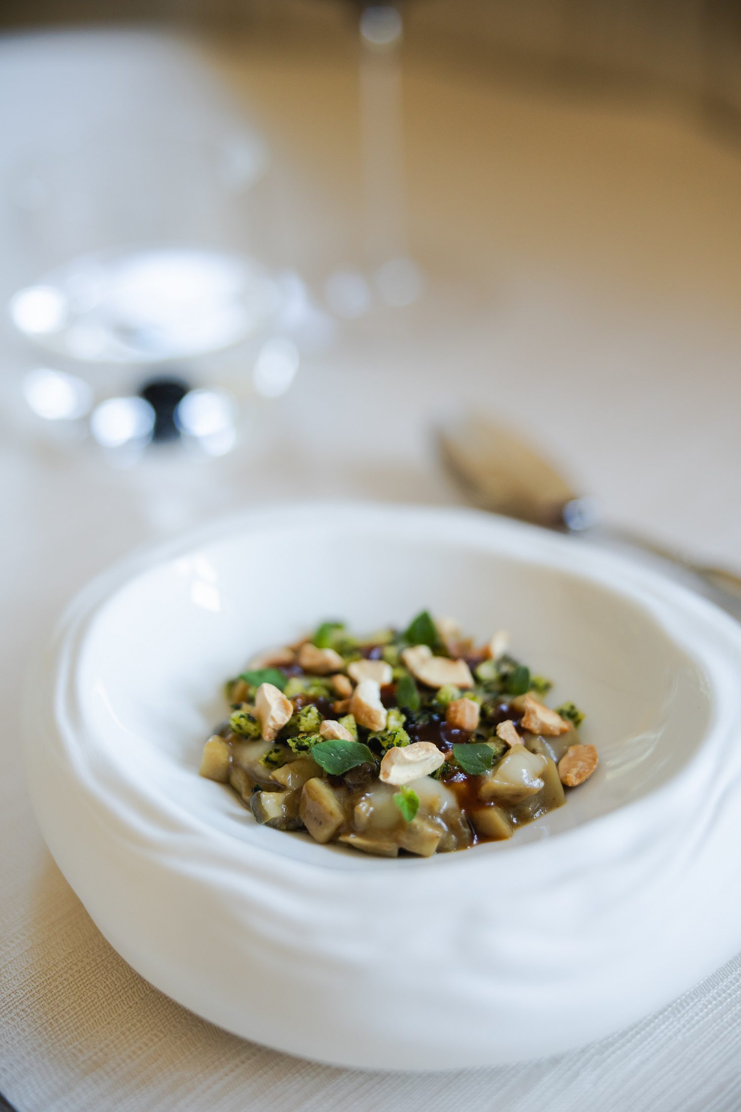 Un piatto che nasce dal dialogo profondo tra territorio, stagionalità e memoria culinaria, dove la morbidezza avvolgente della vellutata incontra il profumo intenso dei porcini del bosco toscano, protagonisti indiscussi della stagione. A completare la composizione, la croccantezza dorata del pane al prezzemolo e la nota tostata e avvolgente della granola di anacardi e arachidi, che donano ritmo e contrasto alla cremosità del piatto.