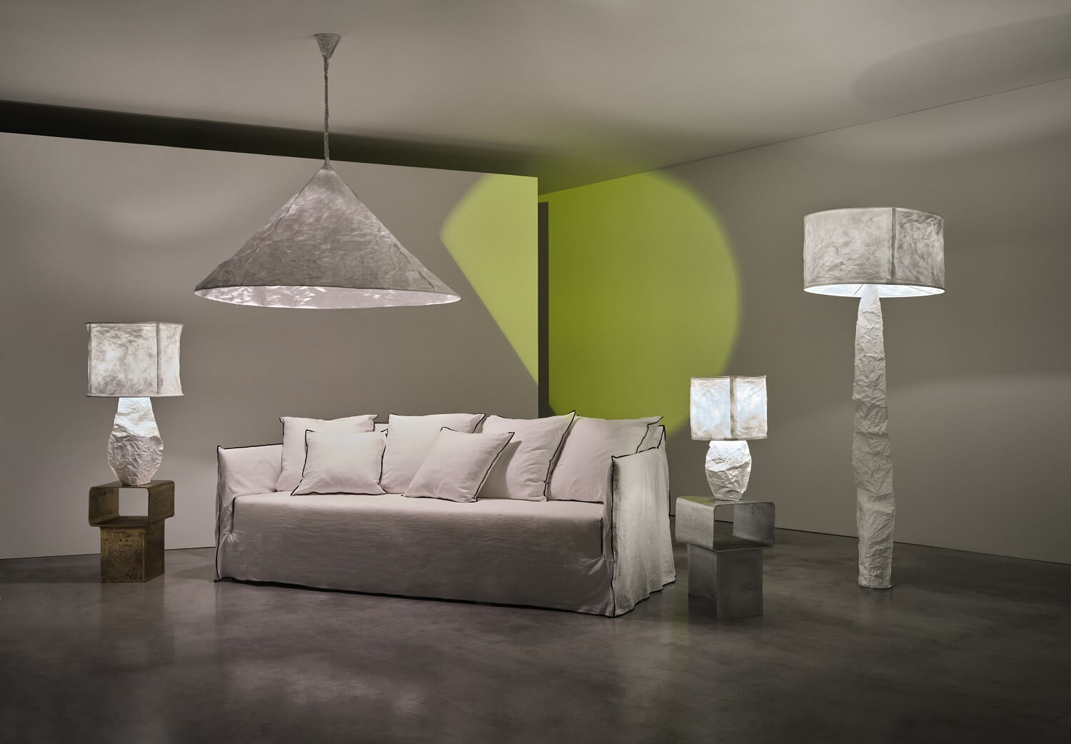 Tre progetti dal catalogo Gervasoni interpretano il materiale in maniera diversa: Kira di Marta Giardini, Moon di Paola Navone e la collezione Allu, dalla stessa designer. Con l’utilizzo di stili e forme diverse, i tre prodotti riprendono il focus del brand per la ricercatezza materica mista alla spinta verso l’innovazione.
