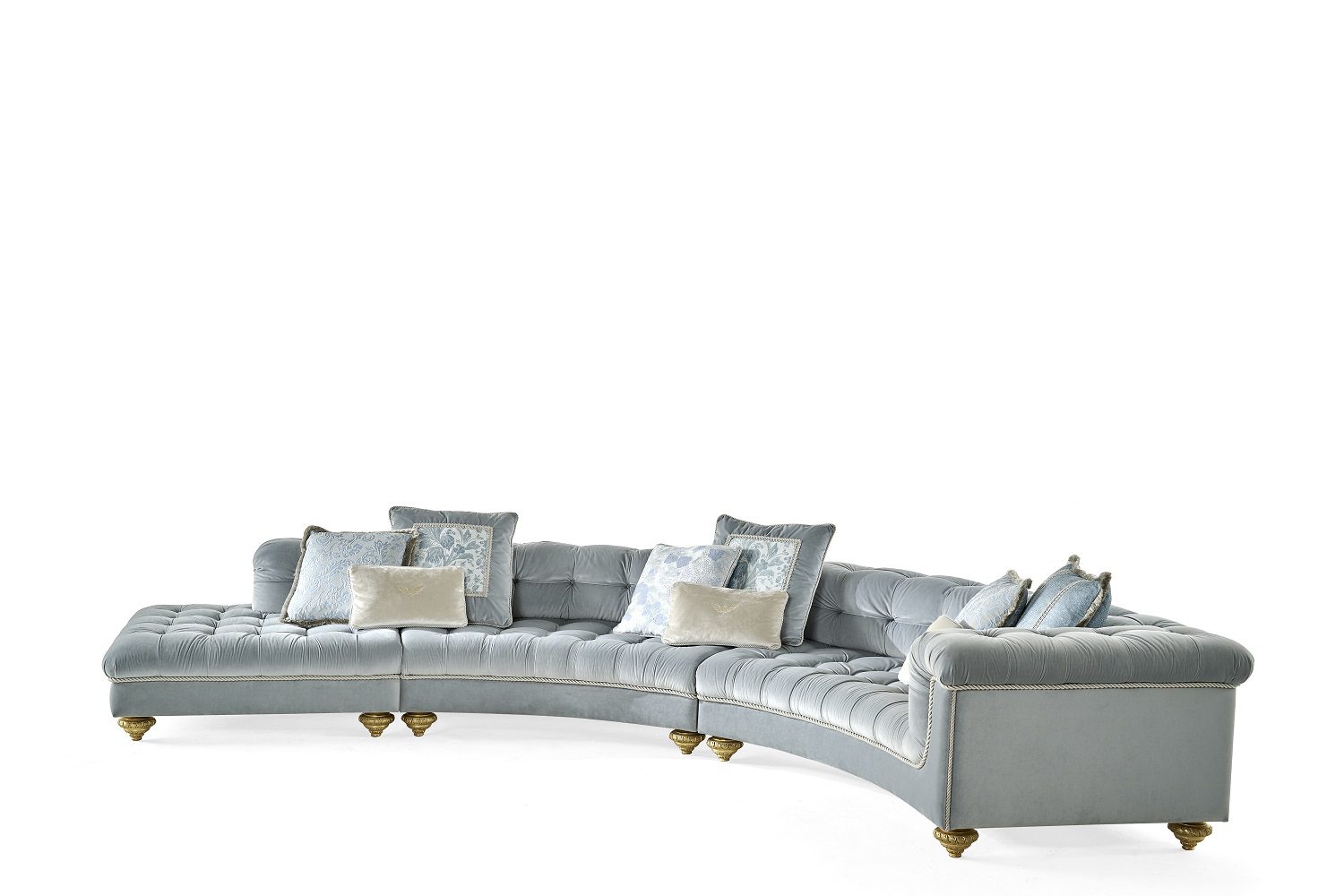 Grand Armée di Jumbo Collection è un divano dalle linee morbide e accoglienti, impreziosito dal fascino intramontabile della lavorazione capitonné. Il profilo è delineato da un cordoncino intrecciato, mentre i piedini in legno intagliati a mano e rifiniti in oro gli conferiscono maestosità. I cuscini decorativi completano l’insieme. Combinazione perfetta di comfort e raffinatezza, Grand Armée incarna lo spirito eclettico e sofisticato di Jumbo Collection.