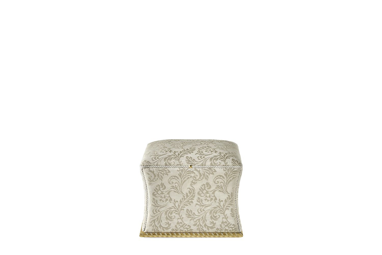 Ondine, rivestito con i pregiati tessuti della collezione, presenta una base decorativa in legno ed è anch’esso completato da una preziosa passamaneria.