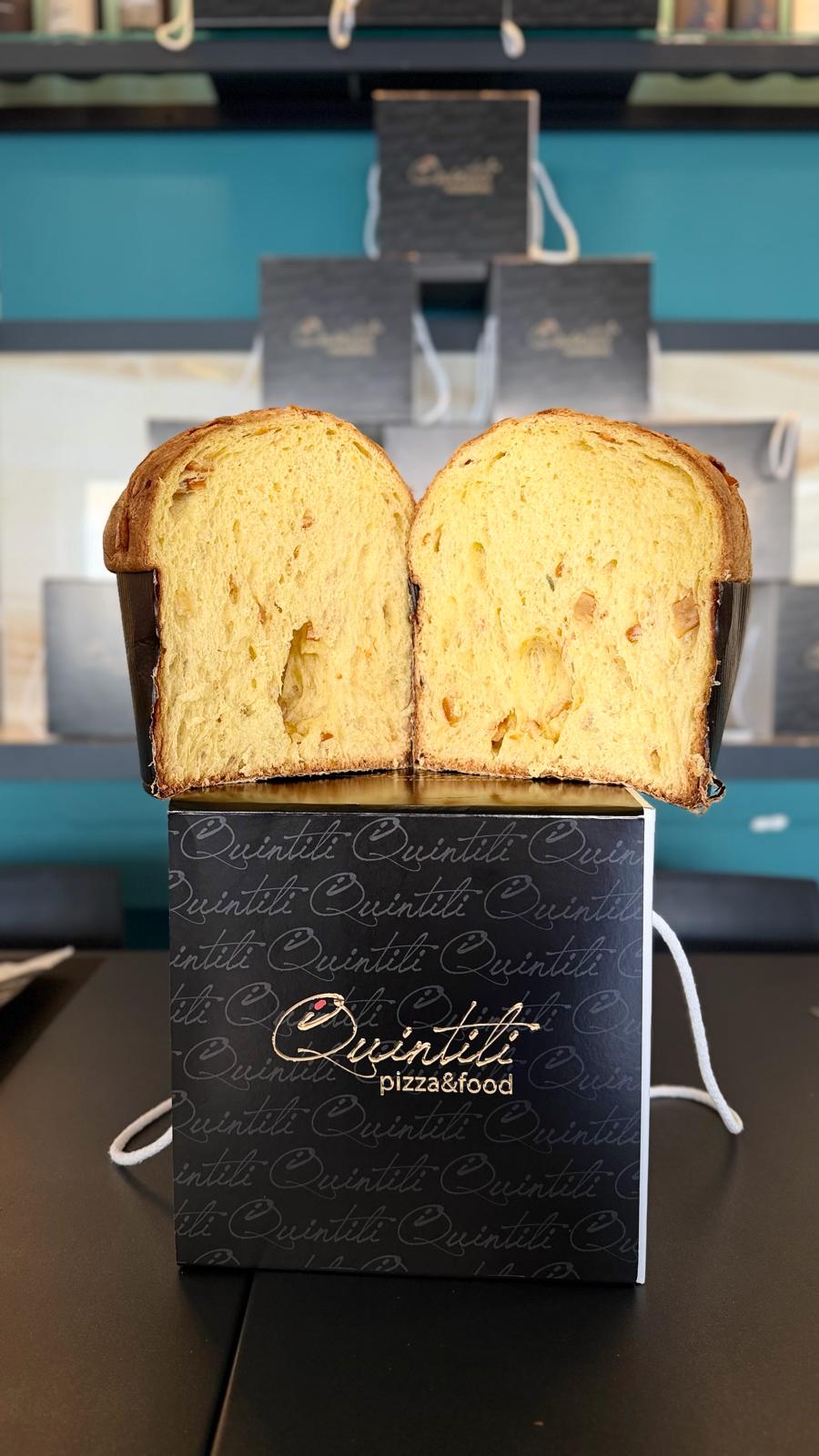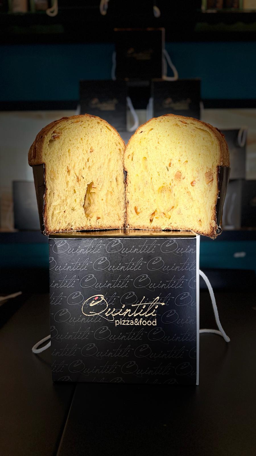È un panettone umido, scioglievole, con un alveolo contenuto, una dolcezza equilibrata e una spinta aromatica che rimane fedele allo stile Quintili: niente eccessi, solo una ricerca attenta della golosità senza mai strafare. Un classico reinterpretato con identità e misura.