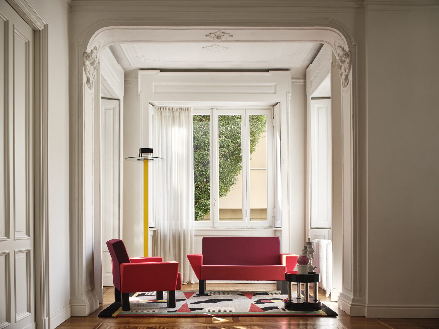 La nuova narrazione visiva ‘The Idea of Home’ e la rivoluzione gentile del design radicale. Tra velluti e stucchi di una Milano classica, gli icastici totem di Sottsass, Branzi e De Lucchi trovano una nuova domesticità. Un dialogo per immagini firmato Alberto Strada.