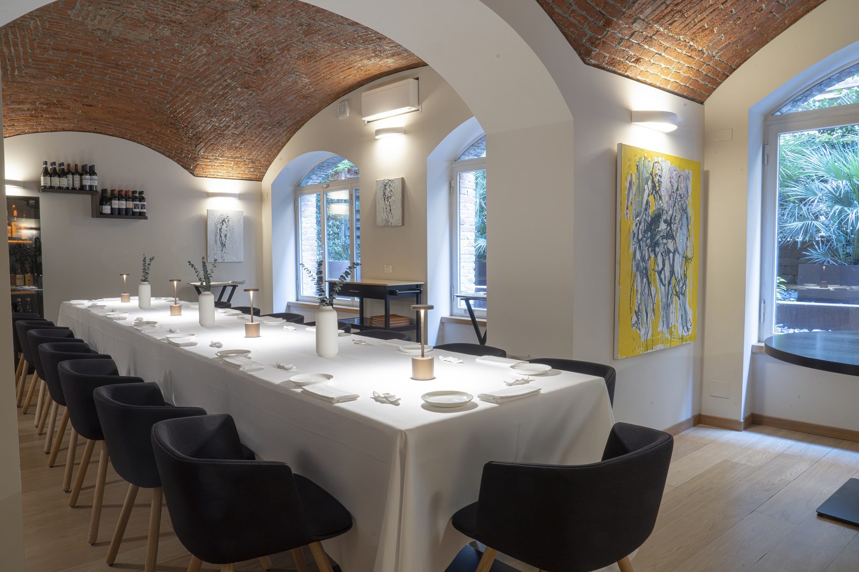 Al piano inferiore, Quadri bistrot si arricchisce di una novità importante: la sala riservata e dedicata esclusivamente ad eventi privati, degustazioni ed esperienze su misura. Lo spazio, intimo e curato nei dettagli, è impreziosito da un grande tavolo imperiale da 16 posti che accoglie gli ospiti in cerca di un’atmosfera unica.