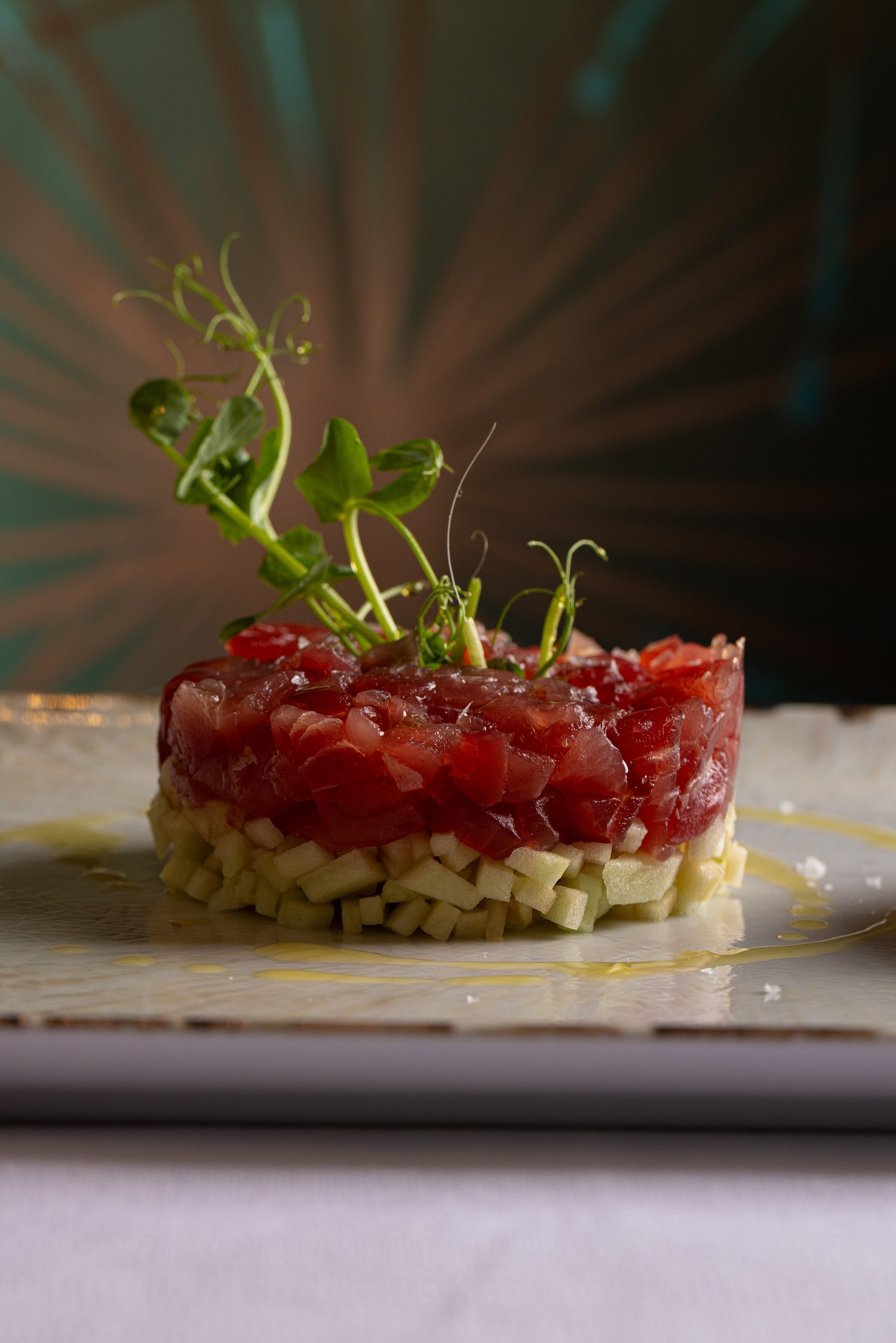 La cucina è un omaggio al Mediterraneo, interpretato con tecniche contemporanee e materie prime d’eccellenza. Il menù, intitolato “Racconto Mediterraneo”, intreccia ricordi e sapori con piatti come i crudi di mare, il Raviolo all’astice su bisque e stracciatella affumicata, la Linguina RaMe con vongole, calamaretti e bottarga o il Risotto Mediterraneo con essenza di limone e scampo crudo.