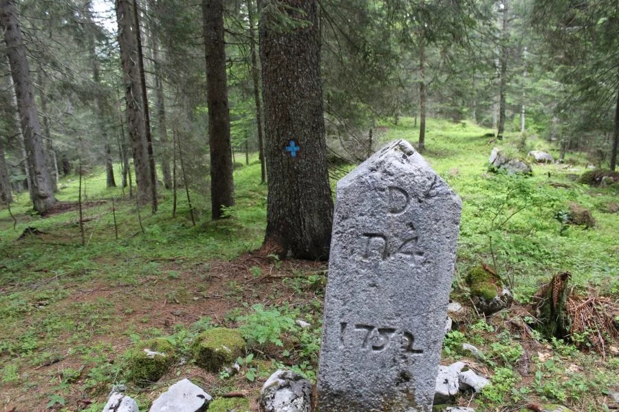 E’ un percorso antico che risale al 1752, anno in cui le dispute tra l’Impero Asburgico e la Repubblica di Venezia resero necessaria una chiara marcatura dei confini. Nel 1750, per volere dell’Imperatrice d’Austria Maria Teresa e del doge della Serenissima Pietro Grimani, fu indetto un Congresso Internazionale per dirimere la questione relativa alla linea confinaria tra i due stati che fu segnata da una serie di cippi tutti uguali, numerati e recanti la data di posizionamento.
